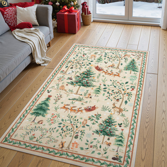 Lahome Christmas Vintage Washable Area Rugs,Soft Ultra-Thin Rugs for Living Room Bedroom, Easy Clean Boho Non-Slip Accent Carpet for Dining Room Office Holiday Decor