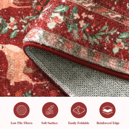 Lahome Christmas Vintage Washable Area Rugs,Soft Ultra-Thin Rugs for Living Room Bedroom, Easy Clean Boho Non-Slip Accent Carpet for Dining Room Office Holiday Decor