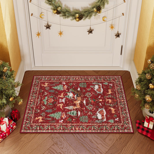 Lahome Decor Christmas Area Rug,Entry Rug Non-Slip Washable Indoor Door Mat for Living Room,Moroccan Holiday Xmas Decor Floor Carpet for Bedroom Kitchen Entryway Bathroom