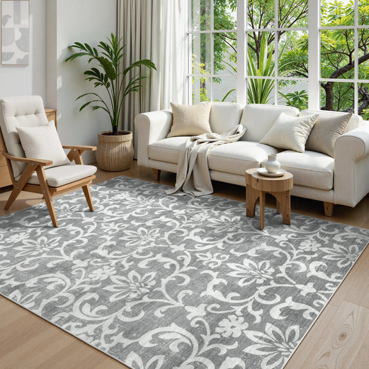 Lahome Decor Floral Area Rug, Machine Washable Rugs for Living Room, Non Slip Rug with Vintage Printed, Low Pile Carpet for Bedroom Dining Room Home Office