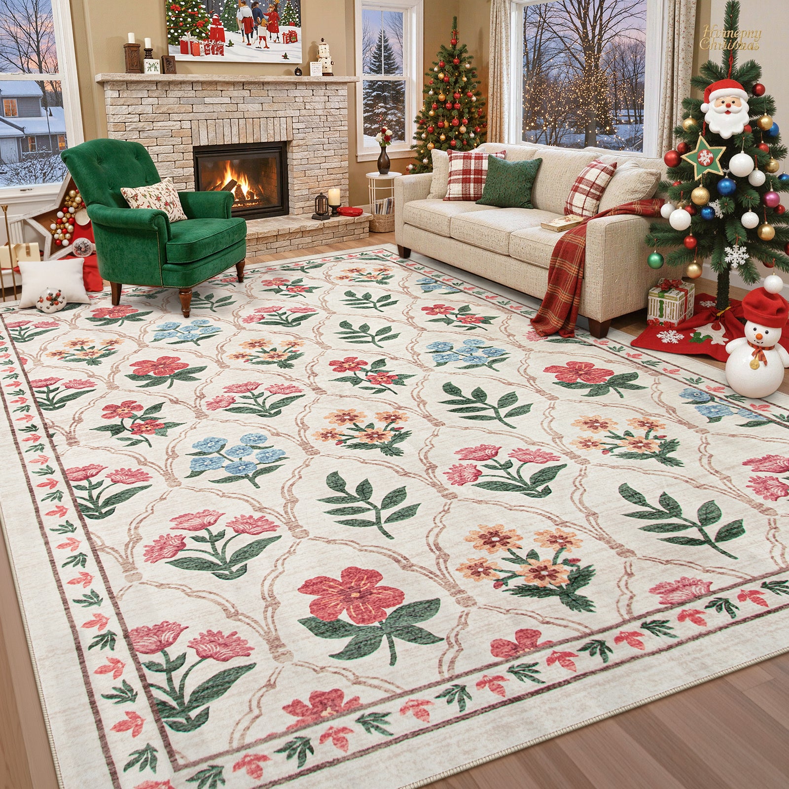 Lahome Decor Moroccan Boho Area Rugs,Large Washable Bedroom Rugs,Soft Non Slip Non-Shedding Kitchen Mat Indoor Office Carpet for Living Dining Playroom Nursery