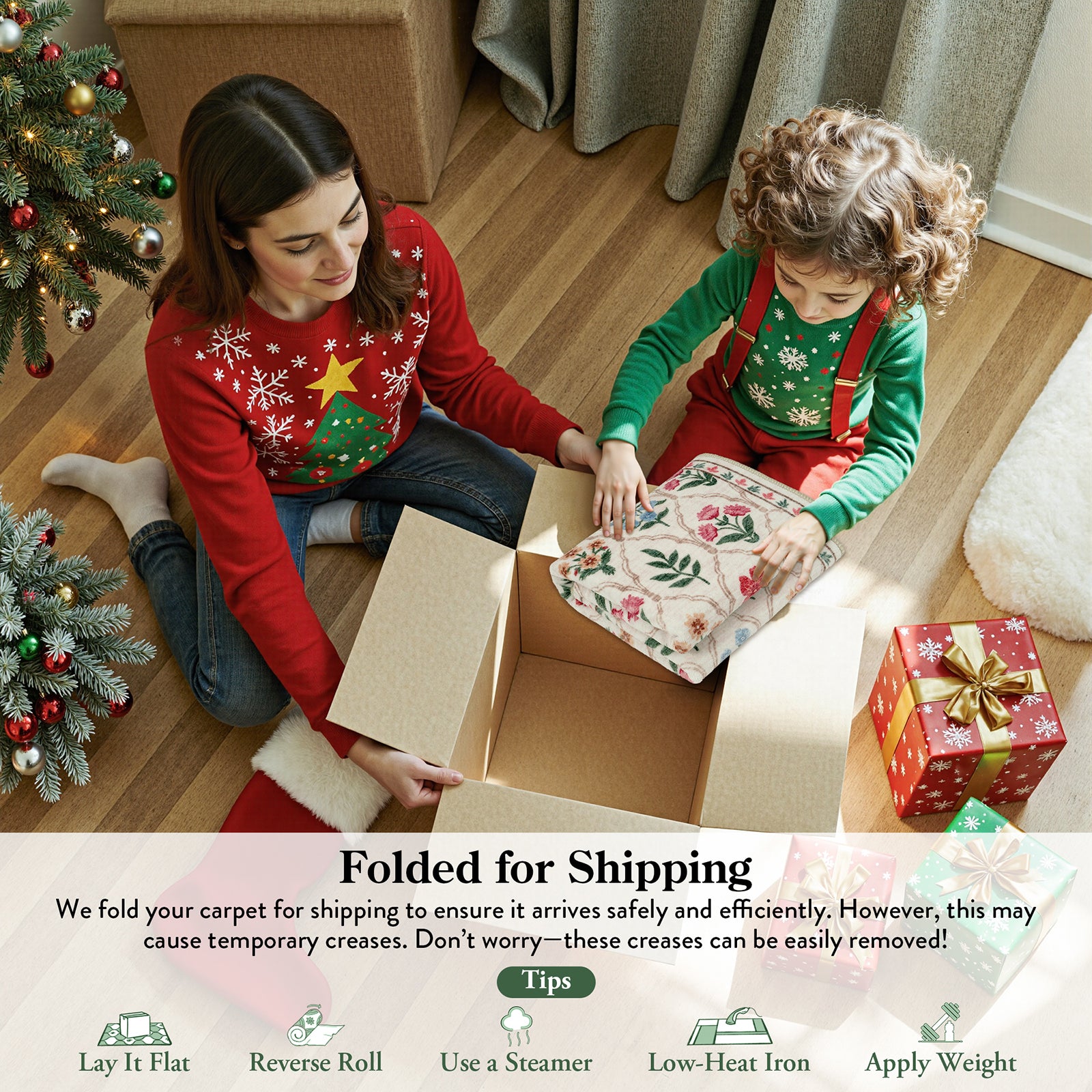 - High Traffic Rug:The ultra-thin living room rug is sturdy and non-shedding, ensuring long-lasting appeal throughout the holidays. The low-file design effectively reduces the accumulation of food residues and hair and is suitable for areas with high daily traffic.