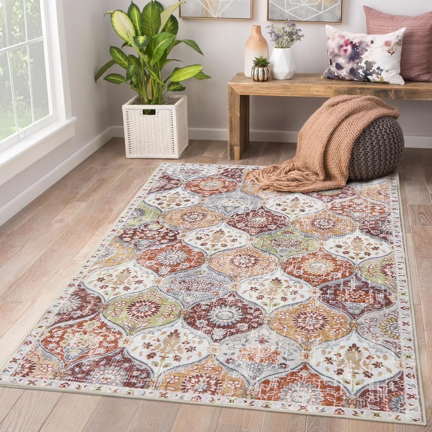 Moynesa Area Rug for Living Room Indoor Non-Slip Moroccan Trellis Washable Mat Large Oriental Accent Throw Rug for Kitchen Entryway Bathroom Bedroom Office Carpet