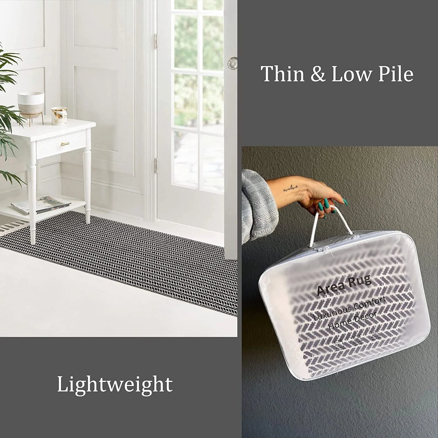 - Absorbent, Reversible, Low Pile and Lightweight