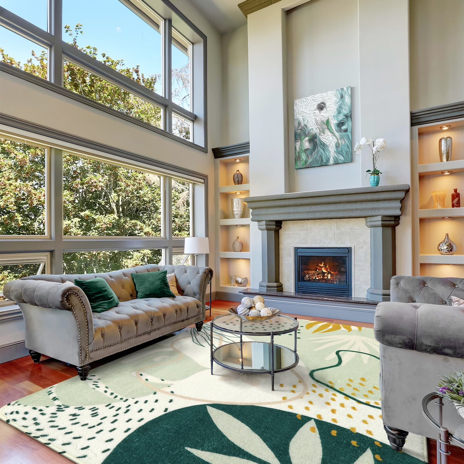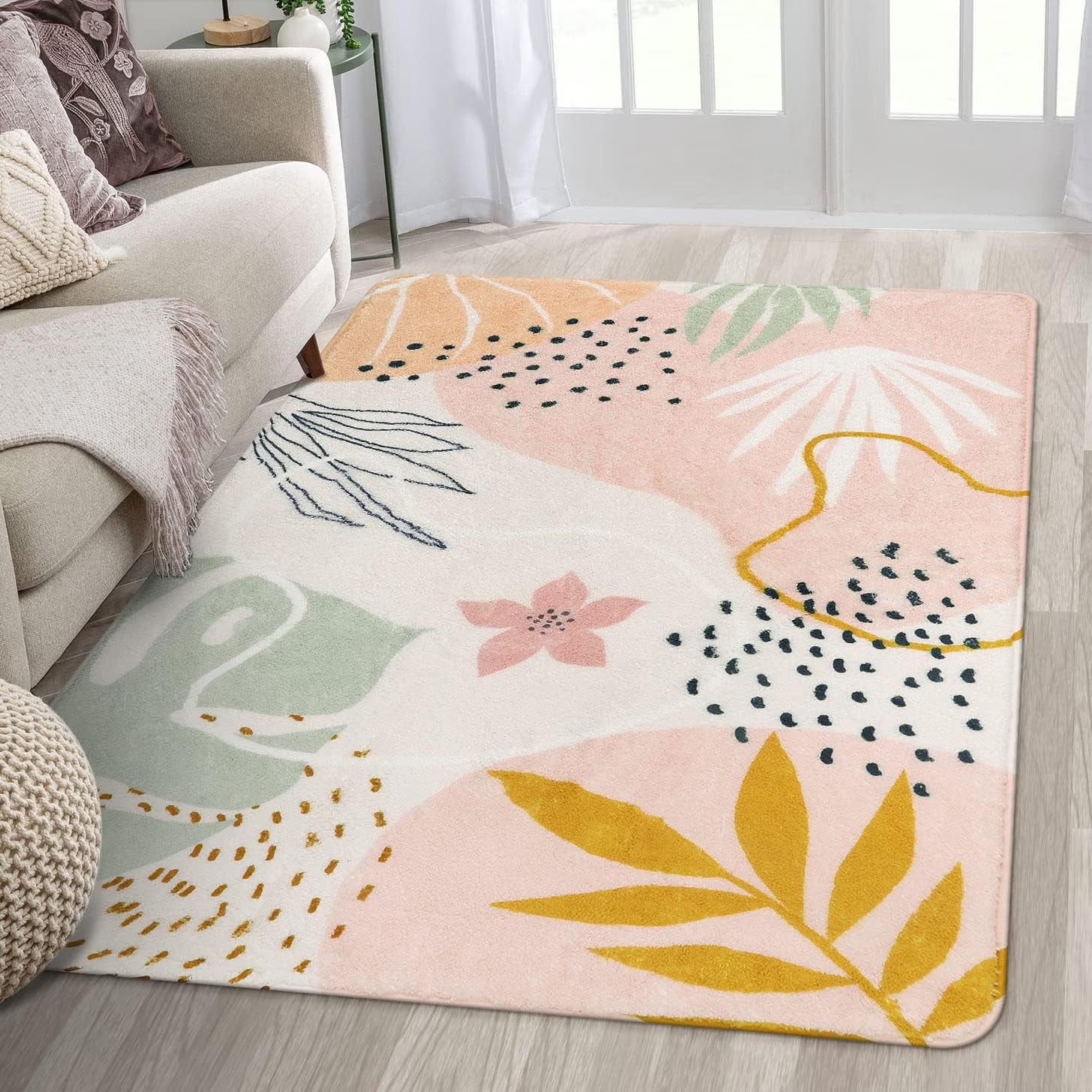Moynesa Area Rugs for Living Room, Carpet for Bedroom Washable Non-Slip Boho Rug Throw Cute Soft Rug,Abstract Botanical Print Indoor Rugs for Kitchen Entryway Dining Room