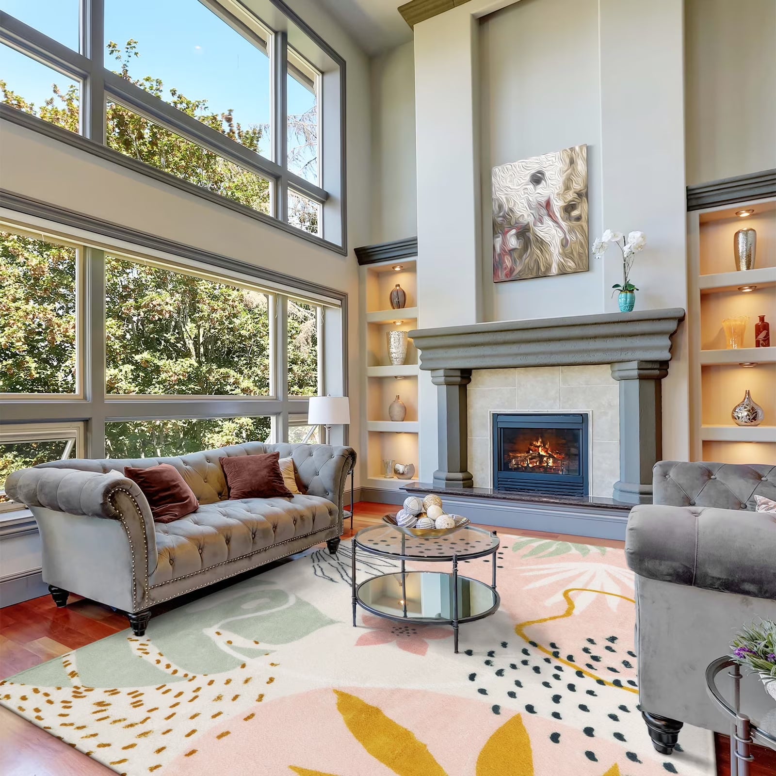 Accent carpet for living room, bedroom, dining room, den, kids' room, office, entrance.