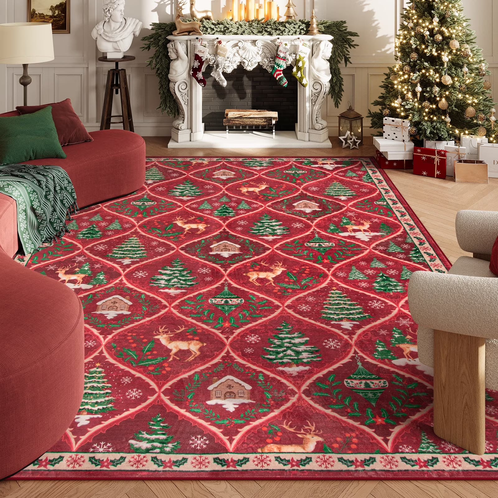 FAMILY AND PET FRIENDLY Xmas Area Rug